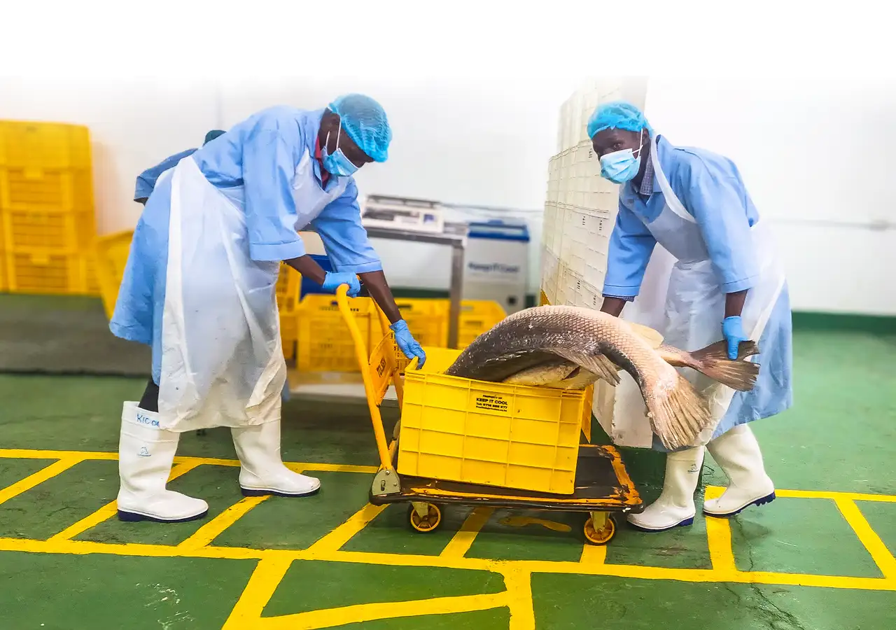 As a middle step, the aggregated produce is transported to the Zidisha Hub, in Nairobi for value addition. Further quality checks are conducted upon receipt of the produce and before the fish is sorted, scaled, gutted or filleted, and portioned according to customer specifications.